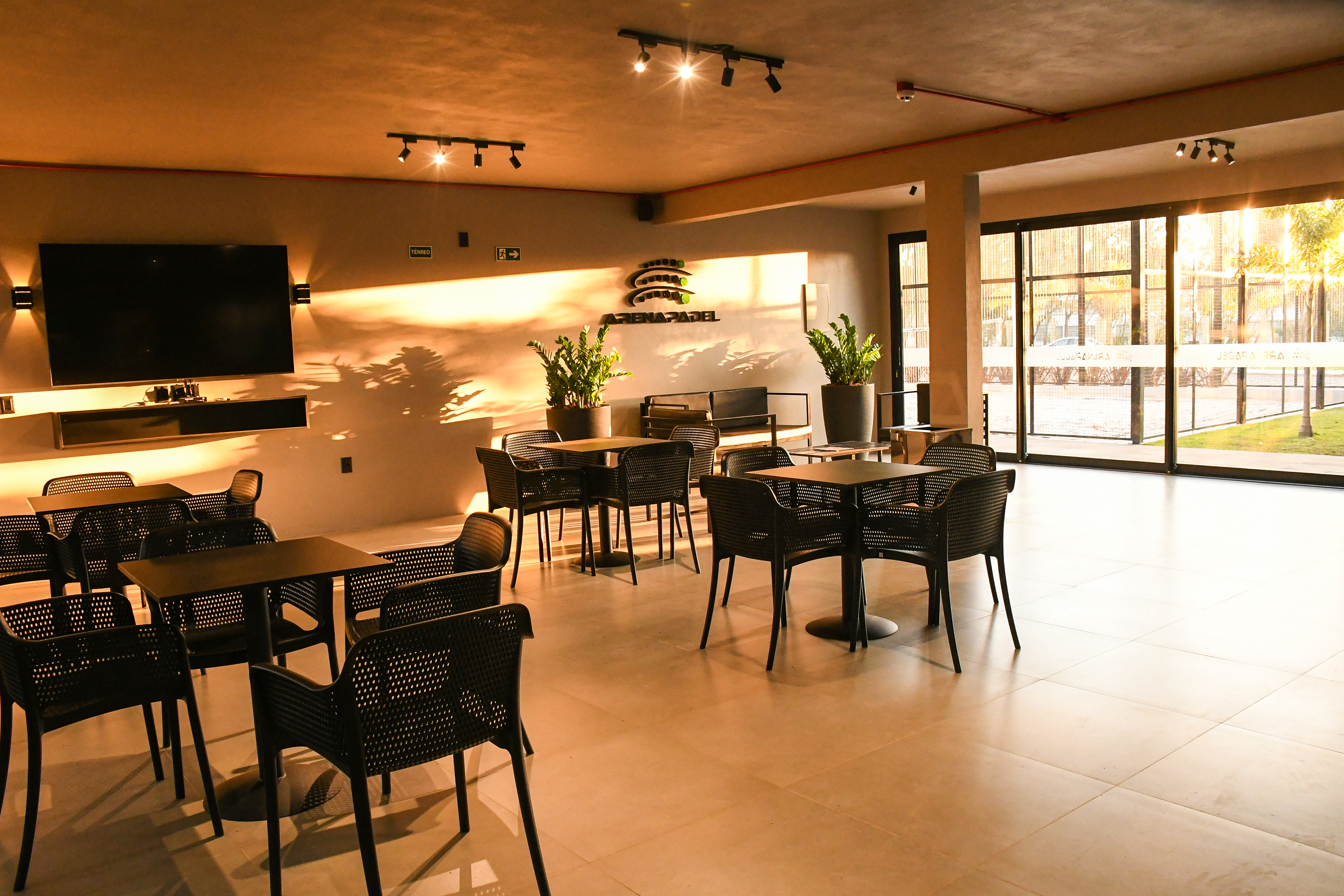 Aqui você contará com a Arena Bar, lanches e bebidas servidas no decorrer do dia e da noite, com tv e sofás para você descontrair e se quiser pode contar com o canto do chimarrão para você tomar assistindo e prestigiando os jogos de Padel.